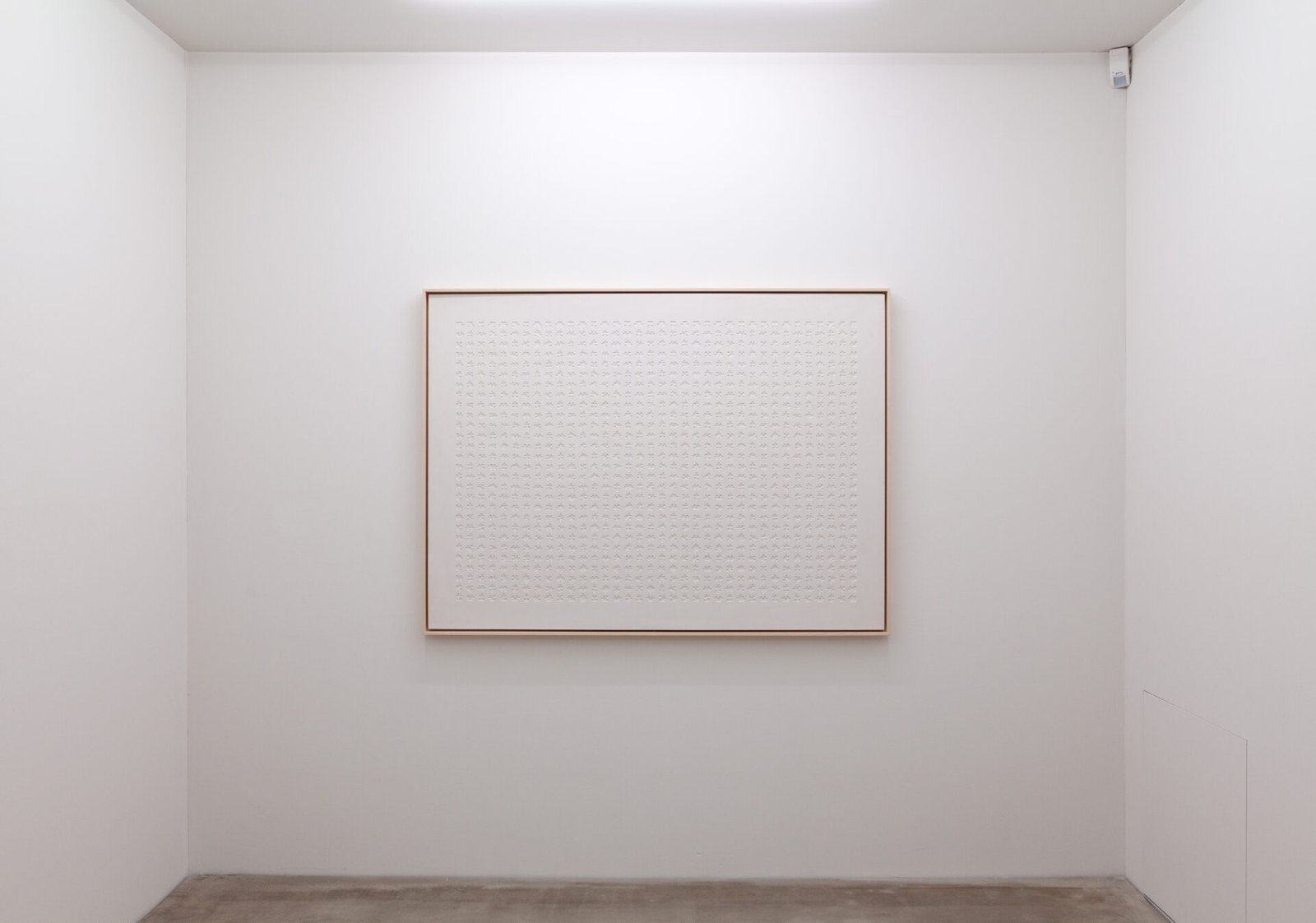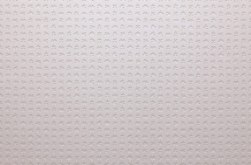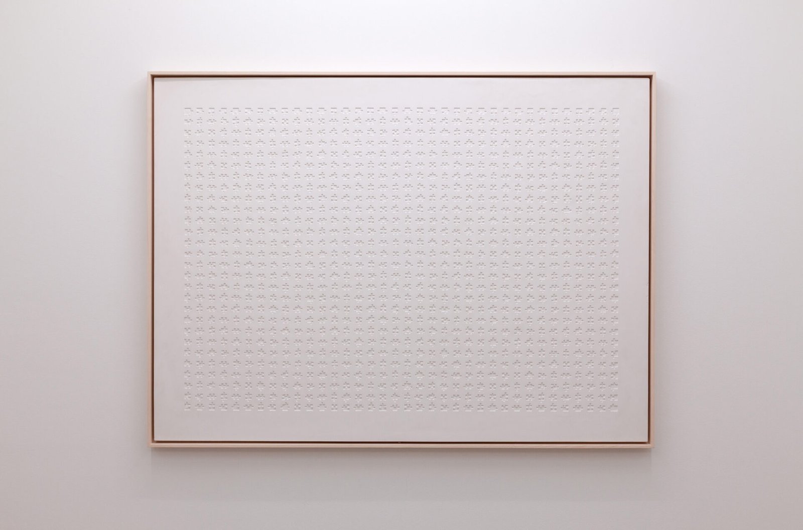 Politische Weltkarte besteht aus dem Negativabguss eines Weltkartenpuzzles in Gips. Das ursprüngliche Puzzle zeigte die Karte aller Nationalstaaten. Für den Abguss wurden sämtliche Verbindungen des zusammengesetzten Puzzles gelöst und die einzelnen Teilchen in einem Raster angeordnet.